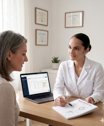 Durante la consulta se realiza una evaluación integral que permite comprender tu situación actual, tus hábitos alimenticios, tu estilo de vida y tus objetivos. A partir de esta información se diseña un plan de alimentación adaptado a ti, enfocado en generar cambios sostenibles y mejorar tu salud a largo plazo.